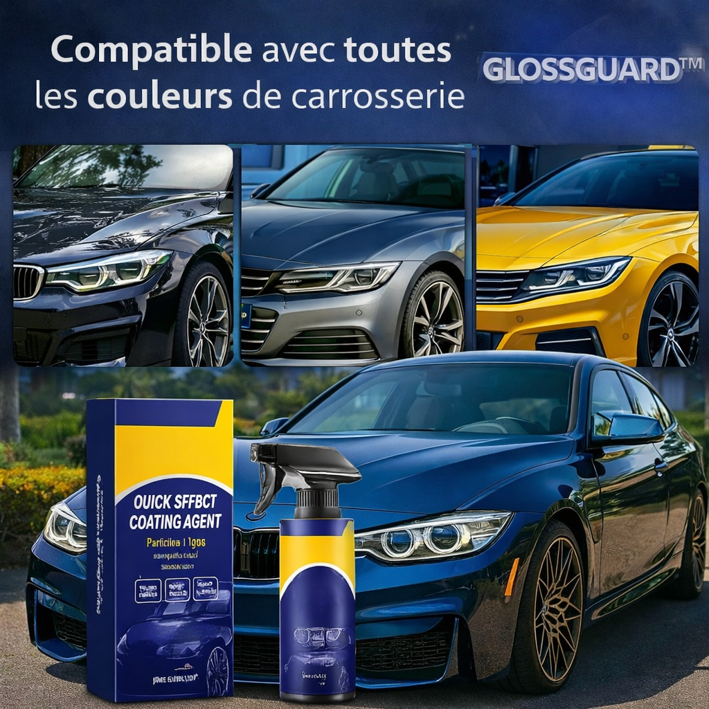 GlossGuard™ est un revêtement protecteur innovant qui nettoie, protège et fait briller votre carrosserie instantanément, sans rinçage, tout en créant une couche protectrice durable contre la saleté, la pluie et les UV.